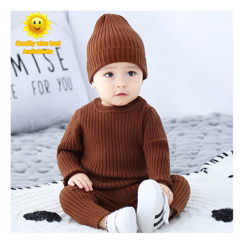 AustinBella/toptan özel butik örme bebek boys 'giyim 3 adet setleri kazak yenidoğan kış tasarımcıları triko giysi